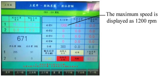 As depicted in Figure 21, the optimized transverse device can reach a maximum speed of 1200 pieces per minute (PPM). Compared with the original productivity of 600 PPM, the productivity is significantly improved.