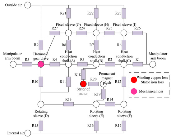 - The high level of integration of the IEMM and the low thermal conductivity of CFRP bring challenges to the heat dissipation of the motor stator. Based on the calculation models of the heating power and thermal resistance, a lumped parameter thermal network model of IEMM was built to evaluate the temperature of all parts and components under different working conditions.