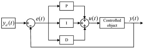 In order to achieve a precise control of the displacement of the SMA-based actuator, PID (proportional–integral-derivative) control combined with the Preisach model of the actuator is used in this section, which was measured in the previous section, to build a PID-based control system. The principle of PID control is shown in Figure 14.