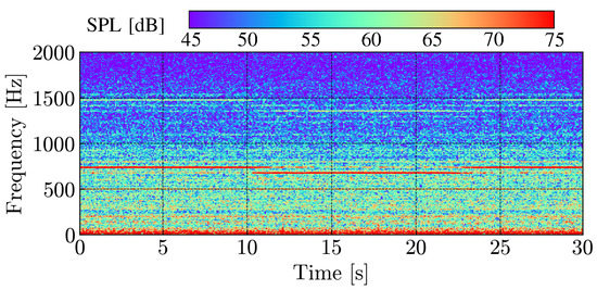 Spectrogram of pressure fluctuation proved by the microphone at .