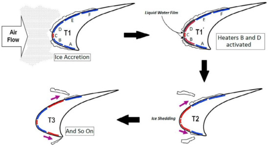 Illustration of the operation of an electro-thermal ice protection system (ETIPS) (reproduced from Huang et al. [39] with permission of Elsevier).