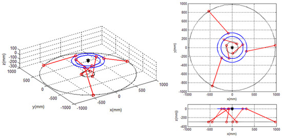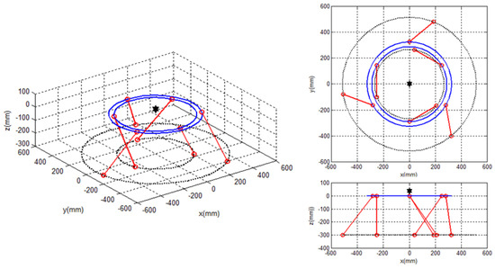 Then, , which is a singular pose in which all struts are parallel to the Z-axis; thereby, cannot be satisfied.