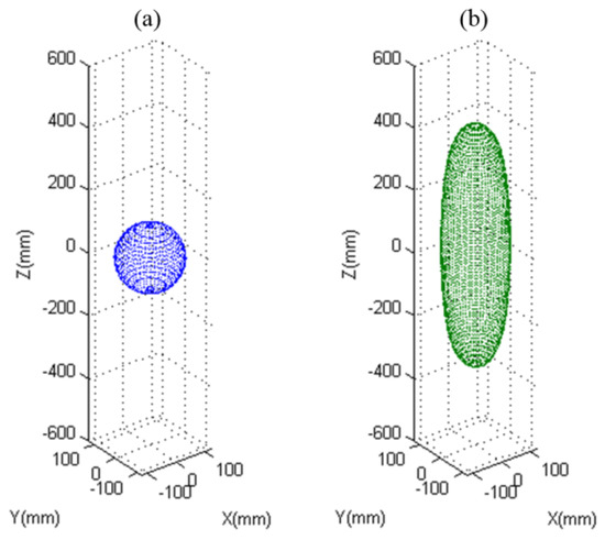 It is a six-dimensional sphere, and constant 1 denotes the energy of the actuator errors. From Equations (1) and (47), it can be transformed into a six-dimensional hyper-ellipsoid equation: