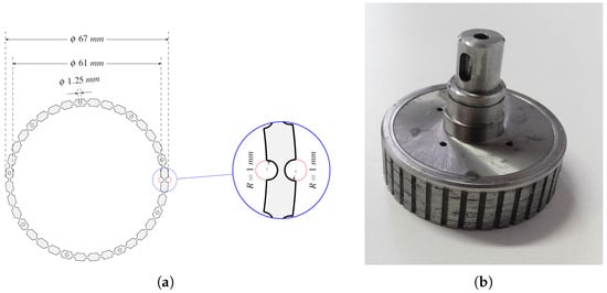 From a magnetic point of view, the arrangement of all ferromagnetic and non-ferro-magnetic structures around the fluid was carefully designed to concentrate and confine the magnetic field within the region containing the MRF, maximizing the transmitted torque. The cylindrical part of the primary shaft consists of several isolated ferromagnetic layers of about 0.5 mm thickness made of AISI-1018 stacked together using non-ferromagnetic (AISI-304) mechanical joinings. Along the circumference of each layer, there are 36 internal and external semi-circular slots with a radius of 1 mm, created at the inner and outer diameters, respectively. The presence of the double squirrel cage allows a suitable address of the magnetic flux lines through both the cylindrical surfaces of the double cup-shaped gap filled with MRF.