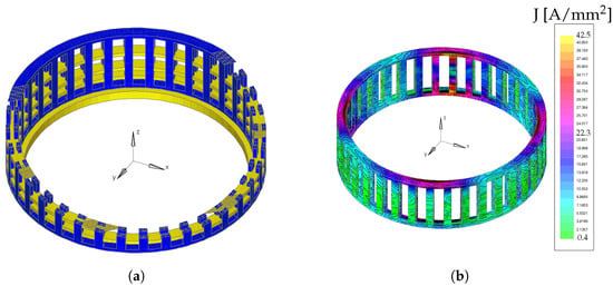 Figure 7 shows the distribution of the eddy currents induced in the double squirrel cage of the primary shaft when the relative speed