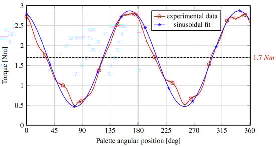 C) were approximated with a sine wave, oscillating around a mean value of about 1.7 Nm. A torque-controlled DC motor, with a nominal power of 7.6 kW, and