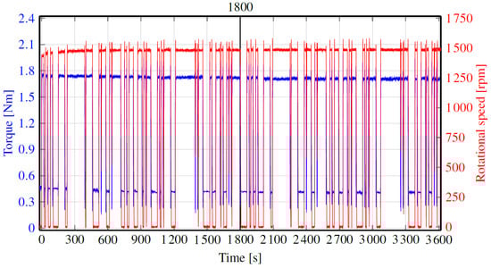 Figure 12. The transmitted torque and the rotational speed of the primary shaft were continuously measured during the test, and the results are shown in