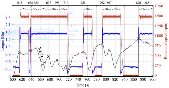 Figure 10). During this experimental campaign, since some properties of the MRF could degrade with the temperature increase, the system was observed in its operation for one hour, considering two consecutive WLTCs to verify the effectiveness of the clutch in transmitting the required torque.