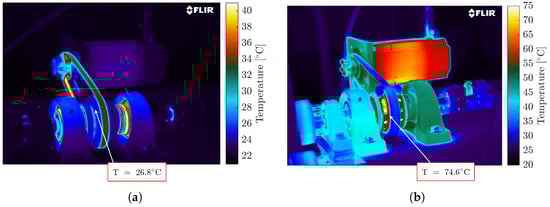 Since the fluid is enclosed inside the clutch, it was impossible to directly measure the MRF temperature and observe how it influences the device’s performance. To overcome this problem, a thin metallic layer with high thermal conductivity was fixed on the case that contains the device in direct contact with the external ferromagnetic case. Even though the temperature of the fluid certainly differs from the case one, after one hour of operation, we considered the structure at steady state thermal condition. An FLIR thermal camera was used to monitor the temperature increase during the experimental tests.