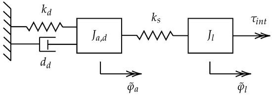 The structure of (6) is that of a two-mass torsional oscillator, which is illustrated in Figure 3. For a user interacting with the system, the output stiffness is the relationship between the interaction torque and output deflection , with the following transfer function: