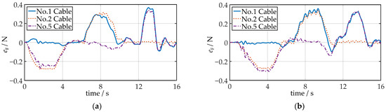 Tension errors of LP. (a) Experimental tension errors in Group 1; (b) experimental tension errors in Group 2.