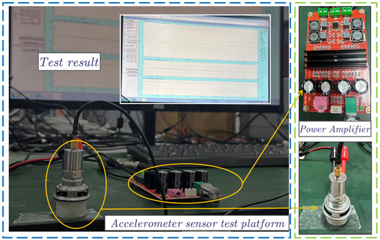 Importantly, the negligible mass (approximately 0.1 g) of the piezoelectric ceramic sensor allows us to disregard it; thus, it was not installed during the tests, as shown in Figure 4. However, the mass of the accelerometer cannot be disregarded for the LBIA. The output characteristics can be expressed as