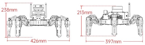 The structure of the experimental hexapod robot in this paper is shown in Figure 1, in which the overall length of the hexapod robot is 397 mm, the width is 426 mm, and the height is 238 mm. The forward direction of the robot is the X-axis positive direction, the X-axis positive direction rotated counterclockwise by 90° is Y-axis positive direction, the vertical upward is the Z-axis positive direction, and the unit of measurement is mm. The coordinates of each joint are shown in Table 1.