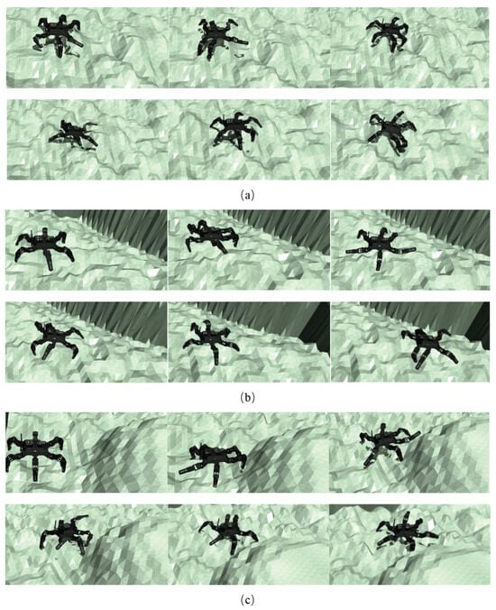 The method given in this paper requires manual selection of a specific policy network when facing different terrains. In future work, we will train a network so that the robot learns to classify terrain and choose the best motion strategy during movement. The network enables the machine to adapt to a variety of terrain combinations [48,49]. ILC is a control method that optimizes the current system based on historical experience. Optimization of the robot’s end-of-foot trajectory, in conjunction with ILC, could be used to improve the robot’s locomotion performance [50,51]. In addition, shared control combines human intelligence and robot intelligence, and the framework could fully utilize the advantages of human–robot collaboration to better train the strategy network [52].