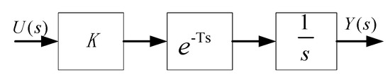 The mechanism model shown in Equation (1) can represent the servo system speed model. However, there are many unknown parameters which are difficult to determine precisely. Under the condition of 1/20 rated speed to 1/3 rated speed, the overall structure of the single-axis servo system with angular speed as the input signal and position as the output signal can be effectively simplified, as shown in Figure 2. The simplified model structure can be used to fit and describe the dynamic response of the complex engraving machine system. In general, the system with integral factors can be described using a transfer function, and this function model is not only simple in structure but also conducive to modeling using identification technology.