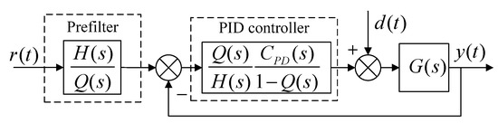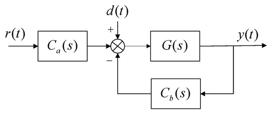 The basic structure of the 2-DOF PID control system adopted in this paper is shown in Figure 3, where and are, respectively, input disturbance and output measurement noise. is the system transfer function; is the set point tracking controller and is also named as the outer loop controller or prefilter, which is used to ensure the set point tracking performance and is the disturbance rejection controller and is also named as the inner loop controller, which is used to reject the influence of input disturbance on the system.