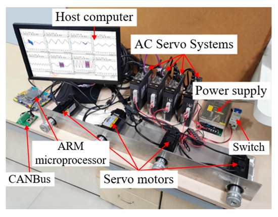 The engraving machine system used for testing is shown in Figure 15. The detailed parameter configuration of the experimental platform is shown in Table 1. When the driver works in speed mode, the system can be regarded as a three-axis servo system with angular speed as the input and position as the output. For the same actuator, the mechanism relationship of the three axes is the same, and the X-axis will be controlled in this paper. The engraving machine system can be modeled by the discrete state space model