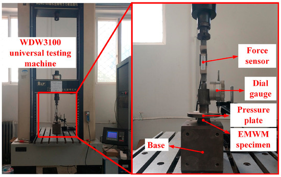 where represents the cross-sectional area of the EMWM specimen. As both specimens were exclusively designed to endure compressive forces in both the initial and operational states, the EMWM specimens underwent sinusoidal compression cycles, as illustrated in Figure 5b.