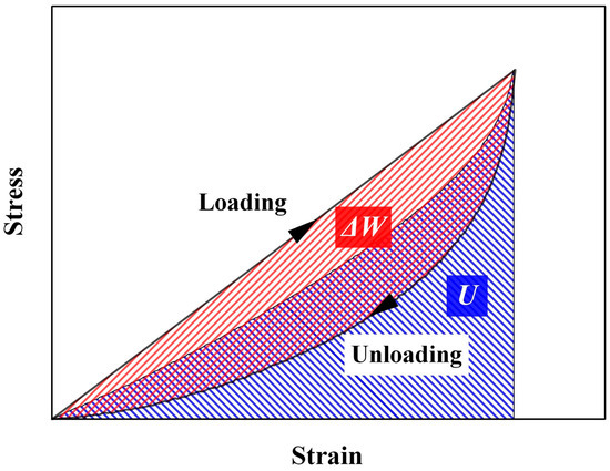 Due to the friction and irreversible deformation between the internal metallic wires, the stress–strain curves during the loading and unloading of EMWM do not coincide, resulting in a hysteresis loop, as illustrated in Figure 8.