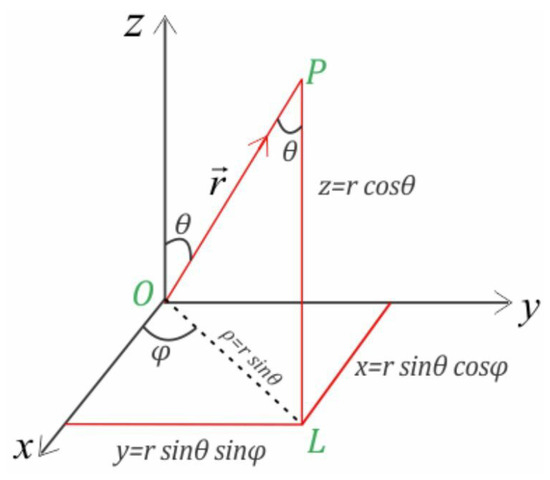 Relationship between spherical coordinates and Cartesian coordinates [35].