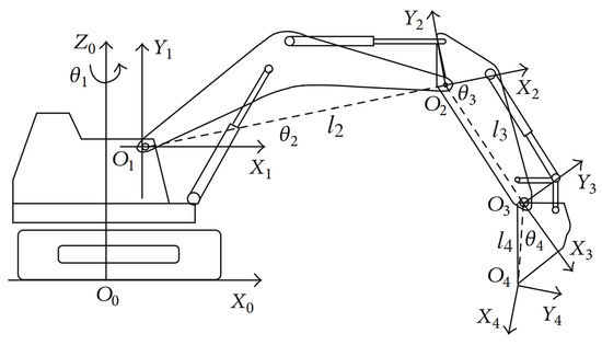 Excavator coordinate systems in Denavit–Hartenberg convention [39].