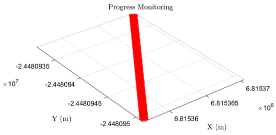 Progress monitoring during the trenching operation: (•) green points show the area where the error is less than the required accuracy, and (•) red points show the area where the error is higher than the required accuracy.