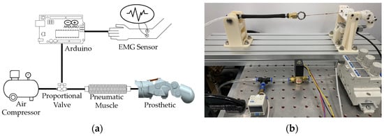 For our experiments, we installed a regulator (arm11BB3-308-A-N, SMC, Tokyo, Japan) on an air compressor (DC991, TICHOT, Hangzhou, China), as shown in Figure 7, and maintained it at 0.7 MPa. When the subject generated the EMG signal, the magnitude was assessed using an Arduino UNO. This estimated signal magnitude was then proportionally converted to a voltage range (0 V~5 V) to control the proportional control valve (KPCV, KCC CO., Ltd., Seoul, Republic of Korea).