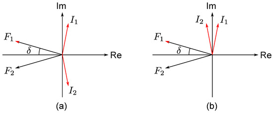 where takes either a plus or minus sign depending on the sign of the argument. When inverting the force equation, it is important to maintain the phase so that large changes in current commands can be prevented. This issue has been discussed in [12] for a three-pole bearing. Here, the phase selection is described from a slightly different perspective.