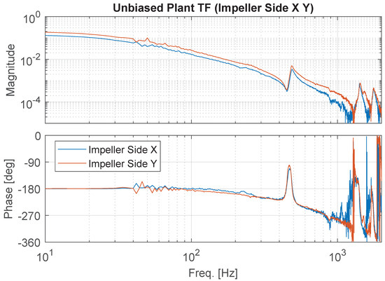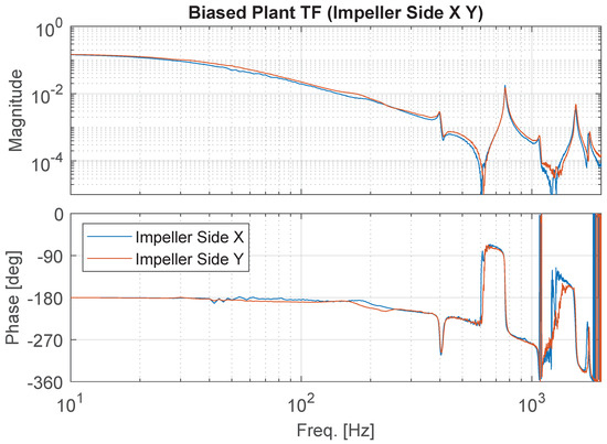 Biased compressor plant transfer functions (X and Y axis of impeller-side bearing).