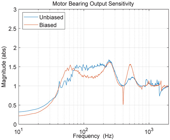 Comparison of output sensitivities of unbiased and biased control (motor bearing).