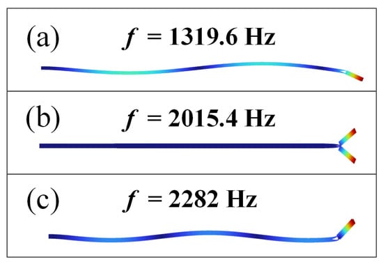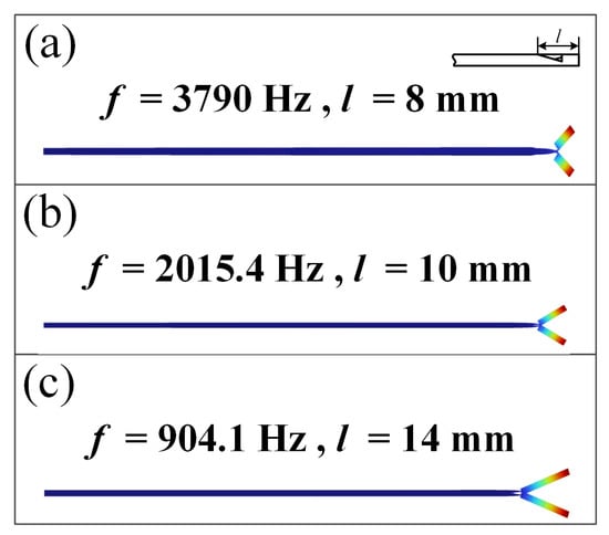 Mode shape simulations with arbitrary lengths of end-efforts: (a) l = 8 mm (b) l = 10 mm (c) l = 14 mm.