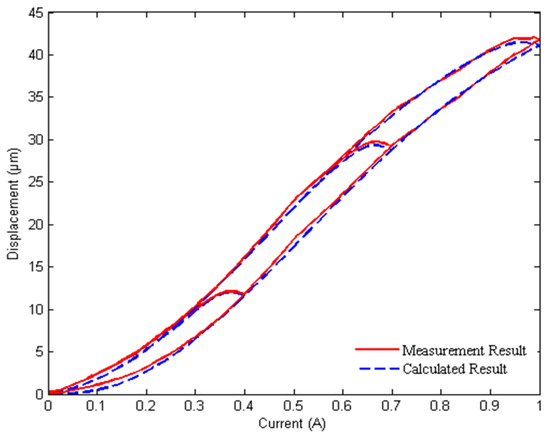 In combination, the output displacement model for GMA is described by Equation (1) to Equation (7). The displacement change can be calculated according to the applied magnetic field generated by the current in the drive coil. However, to obtain the output displacement, the parameters of the displacement model need to be identified.