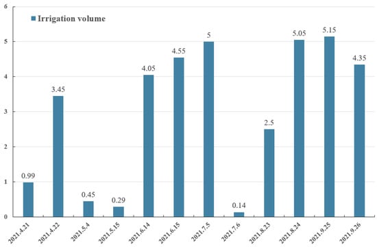 In 0–15 cm soils, soil moisture and irrigation volume are approximately linear [39], so the irrigation system model is constructed as follows: