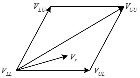 Consider reference voltage vector Vr in Figure 3. The range of the g-axis component Vrg and h-axis component Vrh is (−1 to 1). When Vrg and Vrh are rounded up and down, four vectors can be obtained as follows [24]: