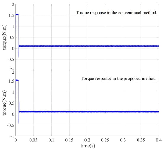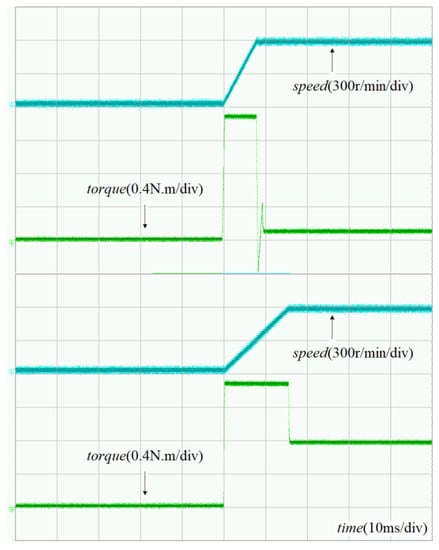The torque responses when the motor is in approximately a no-load state and under load are illustrated in Figure 11 and Figure 12, respectively. The speed responses are illustrated in Figure 13 and Figure 14.
