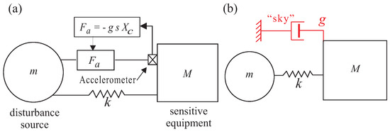 Figure 16. (a) Isolator based on acceleration or an absolute velocity sensor (geophone). (b) Equivalent skyhook damper.
