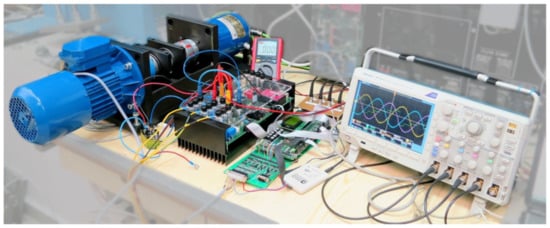 In a previous stage of investigation, the 6S3P and 4S3P topologies were successfully tested on a laboratory bench (Figure 2) [32,33]. The laboratory rig was equipped with the ALFINE-TIM ALS-G3-1369 controller board, which was based on using the Analog Devices SHARC® ADSP-21369 digital signal processor (DSP), ALFINE-TIM three-phase inverter, and LABINVERTER P3-5.0/550MFE. Further details of the laboratory setup, including the PMSM parameters, have been published in [34].