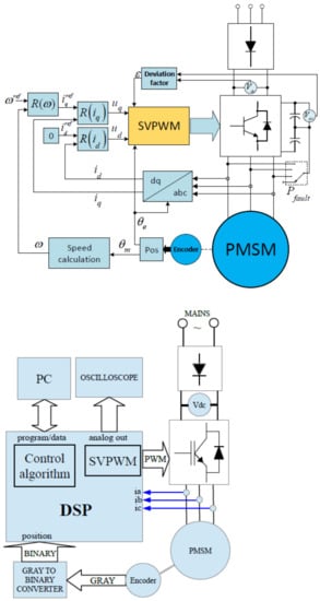 - Łuczak, D.; Nowopolski, K.; Siembab, K.; Wicher, B. PMSM Laboratory Stand for Investigations on Advanced Structures of Electrical Drive Control. In Proceedings of the 2015 20th International Conference on Methods and Models in Automation and Robotics (MMAR), Miedzyzdroje, Poland, 24–27 August 2015; pp. 596–601. [Google Scholar]