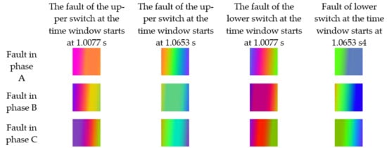 Feature and RGB image extraction, D.Ł.; fault detection and localisation classifier design, D.Ł.; two-stage fault diagnosis approach, D.Ł. and S.B.; faults selection of three-phase inverter, D.Ł. and S.B.; data generation of three-phase inverter faults, K.S. All authors have read and agreed to the published version of the manuscript.