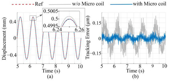 The resolution of the CEDAPS under an open loop when driven by the macro coil is 1.04 µm and 20 nm for the micro coil, both of which are in line with the theoretical figures. Under the proposed control scheme, the resolution under the macro coil is 50 nm, and it is 10 nm under the macro-micro combination as shown in Figure 13.
