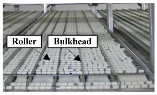 - Yang, D.; Wu, Y.; Ma, W. Optimization of storage location assignment in automated warehouse. Microprocess. Microsyst. 2020, 80, 103356. [Google Scholar] [CrossRef]