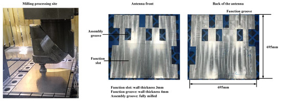 1]. A certain type of aluminum alloy antenna has the advantages of a high gain, small size, light weight, and easy installation, so it is widely used in various series of precision tracking radar systems. With the development of antenna components toward integration, higher requirements for machining accuracy and efficiency have been put forward. However, the antenna components belong to the thin-walled plate components, which have the characteristics of a large size, complex structure, low stiffness, and large material removal rate. These factors are not conducive to milling. After a series of complex processes, it is difficult to ensure that they do not deform. The typical aerospace part undergoes several processes, e.g., forging, rolling, heat treatment, rough machining, etc., before coming to the final finishing stage. Since the generation of residual stress runs through the whole life cycle of component blank forming and processing, residual stress is the main cause of machining deformation for aluminum alloy thin-walled components [