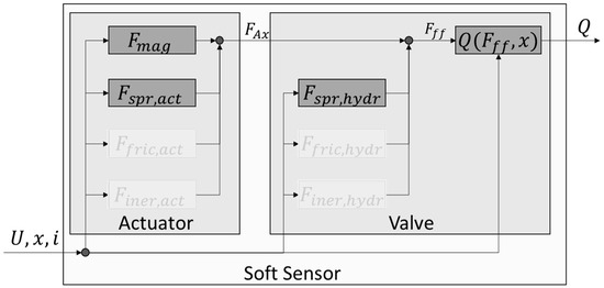 Based on the descriptions in Section 1, a conceptual structure of the soft sensor and its sub models is derived, as shown in Figure 3. The soft sensor can be divided into two main subsystems: The actuator and the valve.