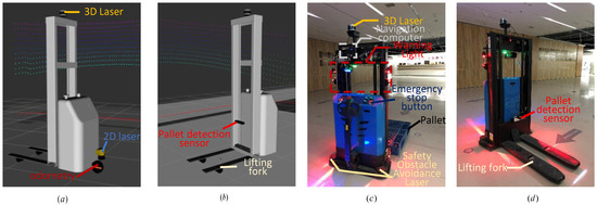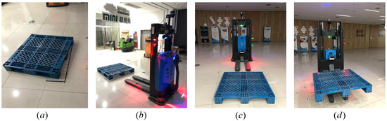 In recent years, with the rapid development of modern industry, traditional factories have gradually merged with intelligent factories. As a result, unmanned forklifts have been widely implemented for in-plant logistics [1]. An unmanned forklift in a factory is shown in Figure 1.