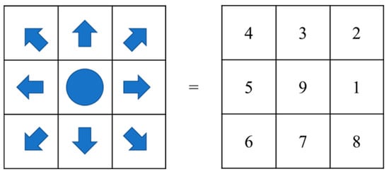 Behavior number: 1 to 8 correspond to the adjacent 8 directions; 9 represents the position of the agent.