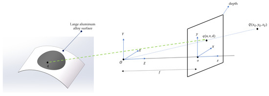 The matrix equation of each point Q in the space corresponding to the q coordinate of each pixel in the defect area in the depth map is as follows:
