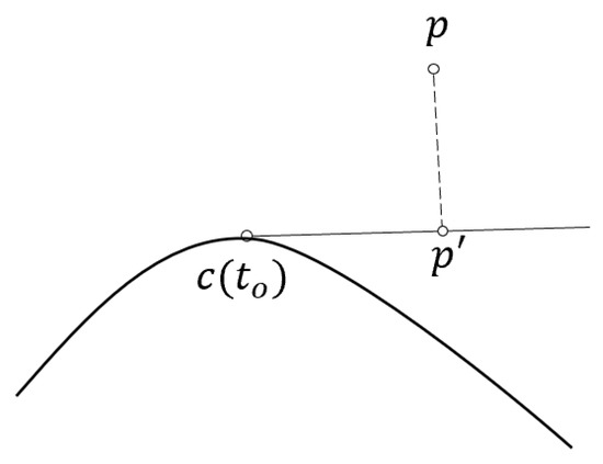 p is a test point. According to the idea of Newton’s iterative method, the geometric iteration of calculating the projection point of p on the curve is as follows: Project