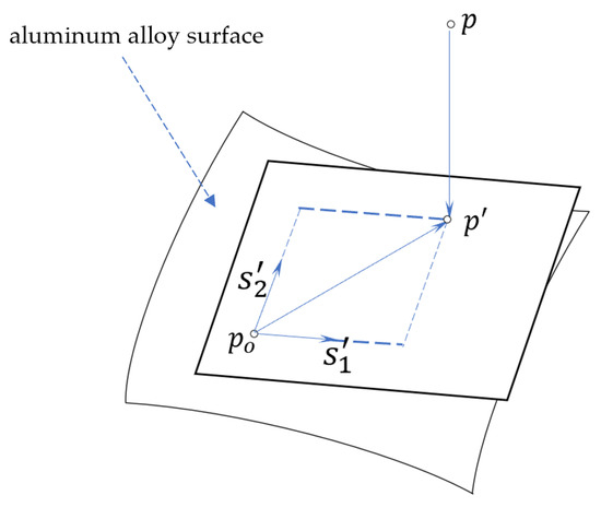 Therefore, and can be solved as the solution of a system of regular linear equations with a coefficient matrix . We update by adding and and repeating the above steps until the line between the projected point and the point cloud is perpendicular to the aluminum alloy surface and the projection distance between the point and the point cloud is equal to the height of the weld.