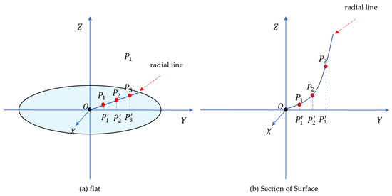 on the surface. In this study, the slicing method is used to find the radial curves at the intersection of the point cloud plane and slices in each direction, as illustrated in