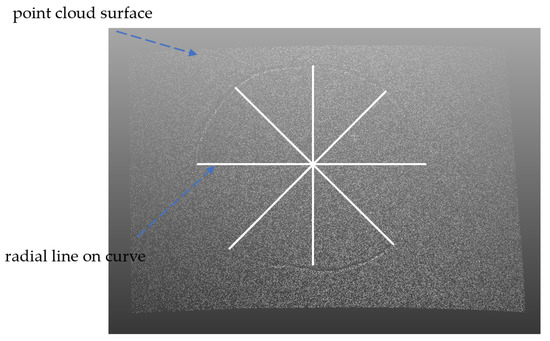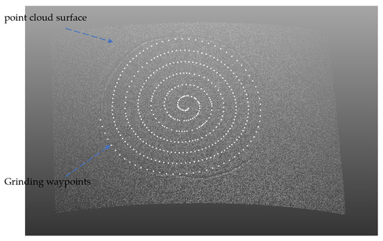 Figure 13. Numerical integration is then utilized to determine the arc length between the point cloud data, using the distance between adjacent points in the radial point cloud as the arc length between two points. A specified arc length spacing Ns is used, with the center point of the defect area serving as the center of the spiral line. The radial curve in each direction is obtained through the slicing method and a grinding point on the radial line is selected based on the distance from the specified arc length spacing, as shown in